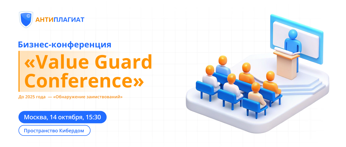 14 октября состоится Х юбилейная конференция Антиплагиата «Value Guard Conference» (до 2025 года — «Обнаружение заимствований»).