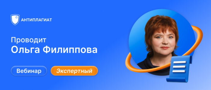 Спасибо большое! Получила новую информацию несмотря на то, что достаточно хорошо разбираюсь и пользуюсь системой Антиплагиат при проверке работ. Также вебинары помогают осознать, что я всё или почти всё делаю правильно, поскольку часто к тому как я проверяю, возникает много вопросов от аттестационной комиссии, в то время как мне приводят в пример другие кафедры, где похоже работы никак не проверяют, и бедные студенты в выпускных работах имеют кучу заимствований (в основном из-за раздела "Материалы и методы", методы в которых описываются более или менее клишированно).