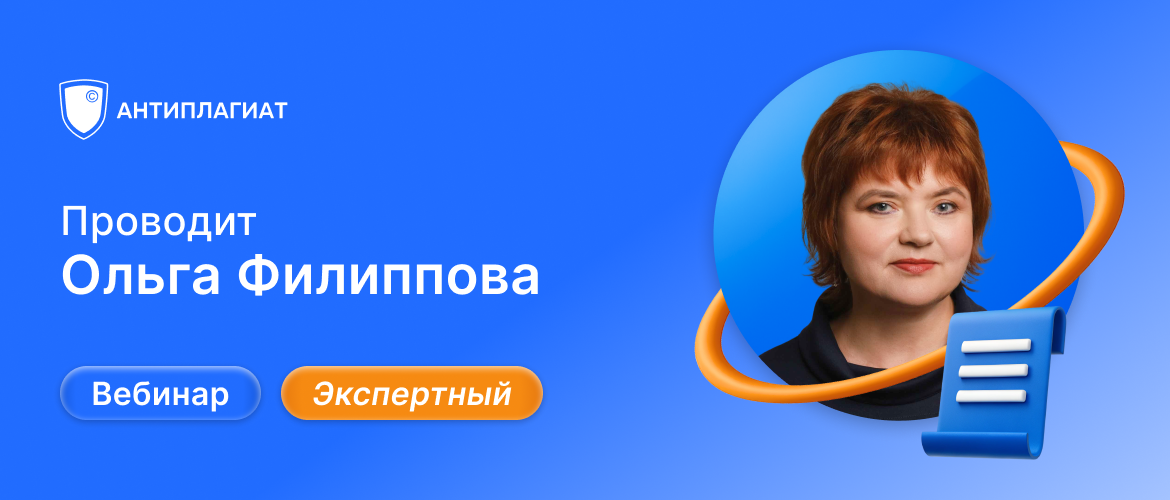 Спикер: Ольга Филиппова, ведущий специалист учебно-методического центра компании Антиплагиат